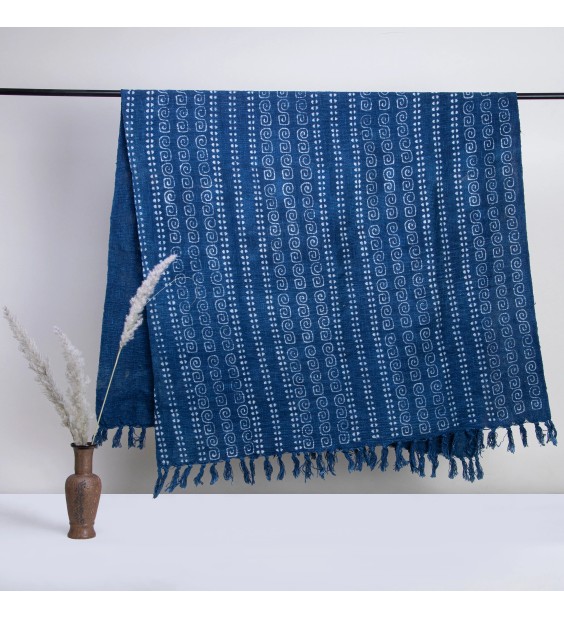 Indigo Spiral Stripe Fringed Woven Throw Blanket
